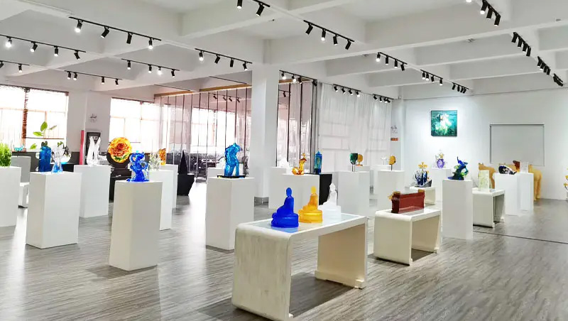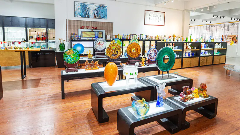 Các tác phẩm nghệ thuật bằng thủy tinh đã dần phát triển từ những món quà thủ công truyền thống để bao gồm đồ nội thất trang trí, văn hóa Phật giáo, bộ đồ ăn pha lê và đồ trang sức thời trang. Cơ sở sản xuất của công ty được đặt tại thị trấn nước Jinxi xinh đẹp và thịnh vượng ở Côn Sơn, tỉnh Giang Tô. Nó có không gian nghiên cứu và phát triển sản xuất thủy tinh rộng 35.000 mét vuông. Cơ sở này được trang bị khả năng thiết kế độc lập, kỹ thuật tạo hình đất sét cũng như nguồn lực nghiên cứu và phát triển công nghệ, thể hiện kỹ năng trưởng thành trong cả quy trình phát triển và sản xuất sản phẩm.