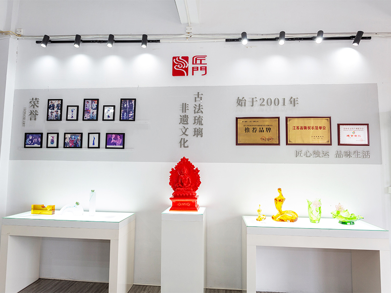 Các tác phẩm nghệ thuật bằng thủy tinh đã dần phát triển từ những món quà thủ công truyền thống để bao gồm đồ nội thất trang trí, văn hóa Phật giáo, bộ đồ ăn pha lê và đồ trang sức thời trang. Cơ sở sản xuất của công ty được đặt tại thị trấn nước Jinxi xinh đẹp và thịnh vượng ở Côn Sơn, tỉnh Giang Tô. Nó có không gian nghiên cứu và phát triển sản xuất thủy tinh rộng 35.000 mét vuông. Cơ sở này được trang bị khả năng thiết kế độc lập, kỹ thuật tạo hình đất sét cũng như nguồn lực nghiên cứu và phát triển công nghệ, thể hiện kỹ năng trưởng thành trong cả quy trình phát triển và sản xuất sản phẩm.