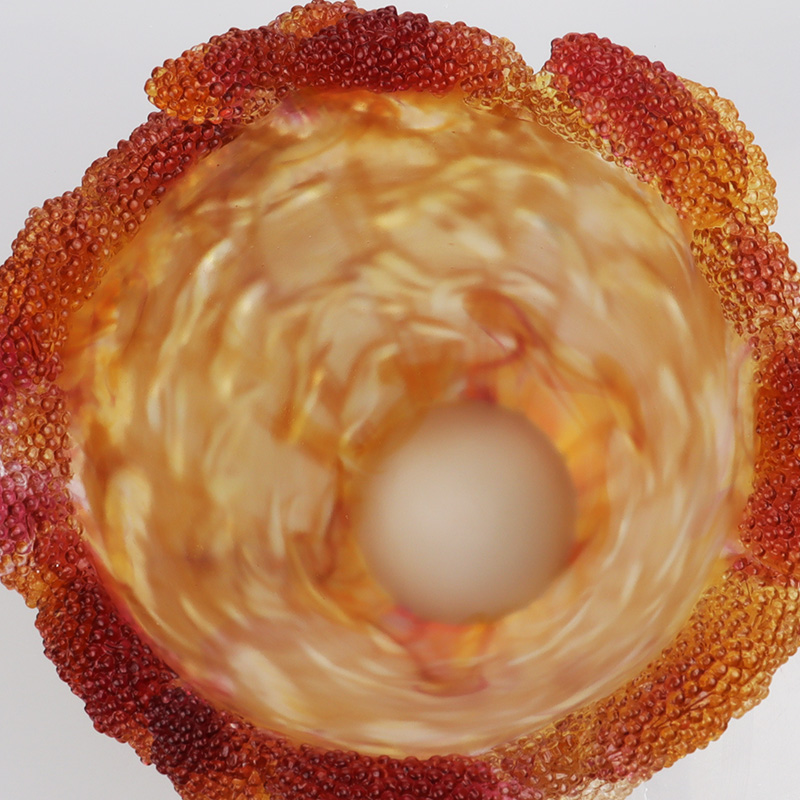 Trong quá trình đúc sáp bị mất, các sắc tố kết hợp và thẩm thấu ở nhiệt độ cao, giải phóng các gradient khỏi sự phân chia cơ học. Những quầng sáng màu hổ phách nơi vàng và đỏ gặp nhau là sự va chạm ngẫu nhiên giữa các nguyên tố đồng và ma trận thủy tinh trong lò nung một nghìn độ—bắt chước một cách hoàn hảo sự phơi nắng không đều khiến cho cây trồng có kết cấu chân thực. “Sự hỗn loạn được kiểm soát” này truyền sức sống tự nhiên cho nghề thủ công nhân tạo - giống như lúa miến chịu đựng gió và mưa, phơi nắng và cuối cùng phát triển màu sắc rực rỡ trên những cánh đồng rộng mở.
